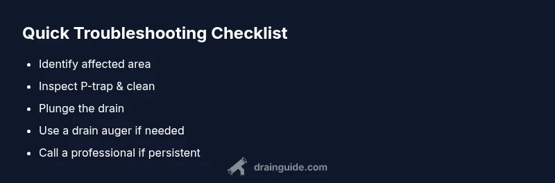 When a drain is backing up, the most frequent culprits are blockages that form in the trap, tailpiece, or horizontal waste line. Hair, soap scum, and food debris are notorious for creating stubborn clogs over time, especially in kitchen and bathroom sinks. In some homes, a buildup can extend into the main line, causing slow drainage in multiple fixtures. According to Drain Guide, preventative maintenance is often more effective than reactive fixes, and understanding the drain path helps homeowners target the right spot quickly. If you notice gurgling sounds, standing water, or a slow drain after a small amount of water is introduced, you’re likely dealing with a partial blockage that needs immediate attention. Remember to work systematically from the open, easily accessible sections toward the main line to avoid creating new clogs in hidden pipes.