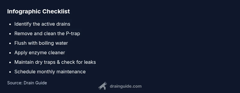 - Use enzyme cleaners and maintain a dry, sealed drain when possible.
