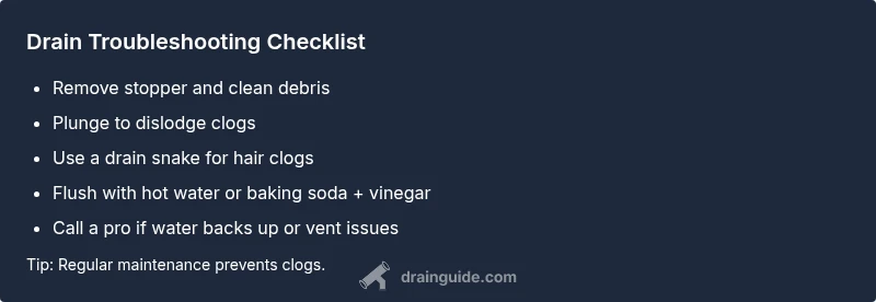 Most often, a slow drain is caused by a simple clog—hair, soap scum, or grease—rather than a major plumbing failure. Start with the easiest fix: remove the stopper or trap, then plunger or use a hand snake to clear the line, followed by hot water flush. If it persists, move to deeper checks or call a professional.