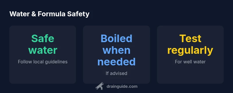 Water quality is a foundational consideration when preparing infant formula. The question can you use sink water with formula depends on local safety standards, the status of your water supply, and your baby’s age. Municipal water is typically treated and tested, but private wells and older plumbing can introduce contaminants such as lead, nitrates, or bacteria. For parents and DIY enthusiasts, the key takeaway is to start with water that is known to be safe for drinking in your region. When safety concerns exist, or if your water has a distinct odor, color, or taste, treat the water before use or choose an alternative. The Drain Guide team emphasizes that water safety and formula safety go hand in hand; failing to verify water quality can increase the risk of illness for a young baby. When assessing whether you can use sink water with formula, check your city or county health department advisories and your local water utility notices. If anything looks unusual, do not rely on guesswork—seek official guidance and consult your pediatrician if you’re unsure.