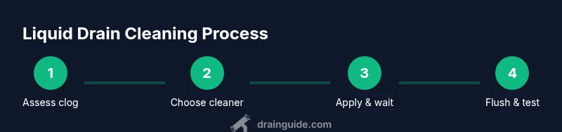 A clear sequence helps maximize safety and effectiveness when using drain clean liquid. First, prepare the space and gather the recommended tools. Next, read the product label to confirm compatibility with your drain type and septic system. Then, pour the instructed amount into the drain and wait for the specified contact time. Finally, flush with hot water if the product permits, test the drain, and reassess if the water remains slow. This approach reduces guesswork and minimizes surprises, while aligning with Drain Guide's best practices.