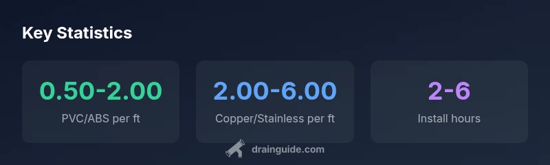 Material choice is the single biggest driver of price. PVC (schedule 40) and ABS offer low material costs and broad availability, typically resulting in the lowest per-foot price for common drain runs. Copper remains a premium option because of its durability and difficulty of installation; it often requires soldering and can demand higher labor charges. Stainless steel is usually reserved for specialty applications or areas with corrosive soils. Drain Guide analysis shows that, while copper and stainless steel can push costs upward, many residential projects comfortably stay within the PVC/ABS spectrum when a standard diameter is used. For most homeowners, the lowest long-term cost comes from reliable plastics paired with proper fittings and venting.