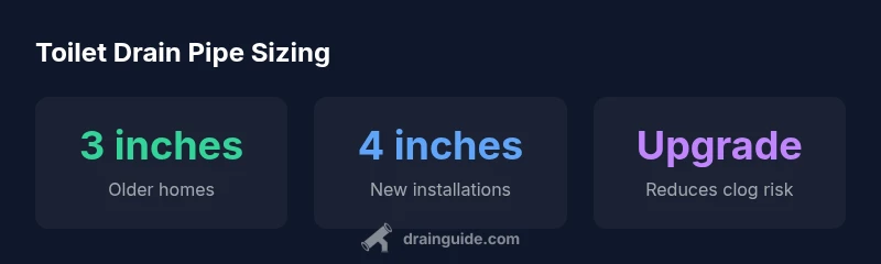 Pipe sizing for toilets follows a blend of tradition, code requirements, and practical constraints. In many older homes, 3-inch drain lines are common because they were standard when the house was built and renovations kept the same footprint. Newer homes and many modern remodels increasingly use 4-inch waste lines to accommodate higher fixture units and longer horizontal runs. While the toilet itself is often designed to work with either 3-inch or 4-inch lines, the downstream piping, elbows, and venting must be compatible. Local jurisdictional codes frequently specify minimums (often 3 inches) and recommend larger sizing where feasible to reduce clogging. Drain Guide notes that matching the downstream line size to the toilet outlet and the rest of the bathroom drain network minimizes bottlenecks and simplifies future maintenance. Consider how your home’s age, material (PVC, cast iron, ABS), and existing venting influence the final choice.