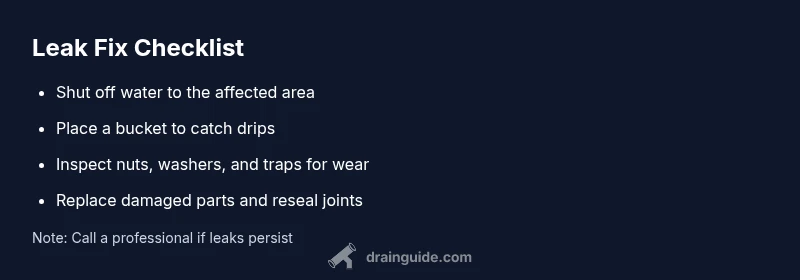 Leaks rarely appear without a reason. By far the most frequent culprits are loose slip nuts and worn washers at trap connections the moment you load the sink with water. Over time, vibration, frequent dishwasher disposal cycles, or accidental overtightening can loosen joints and create a telltale drip. Corrosion on metal pipes or degraded rubber gaskets also plays a major role, especially in older homes with galvanized or copper piping. For plastic systems, cracked or brittle PVC joints from temperature changes can leak at union joints or elbows. Drain Guide analysis shows that most leaks originate at the trap seal, the connection to the wall, or the dishwasher inlet, where hoses meet the drain. Understanding these common failure points helps you prioritize fixes and avoid unnecessary replacements.
