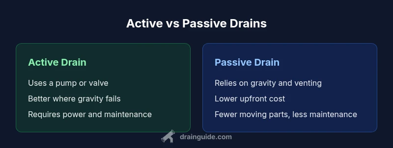 Compare active drains that use pumps to passive gravity drains. Learn which fits your home, installation needs, maintenance, and cost considerations with Drain Guide.