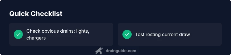 Battery drain in a car is when the 12-volt battery loses charge after the engine is off or during regular use. For homeowners taking on DIY maintenance, treat battery health as a system, not a single component. According to Drain Guide, most overnight drains stem from parasitic electrical load or a failing charging system. Modern vehicles host dozens of electronic modules that can draw power even when the ignition is off, so a systematic approach is essential. In practice, you’ll measure resting current draw, inspect key circuits, and verify the alternator is charging correctly. The goal is to identify whether the drain is intermittent (flickering lights, memory keep-alives) or continuous (constant draw).