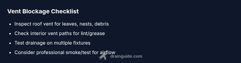 Follow a simple, repeatable flow: start with visible checks of vent openings, then test air movement by running water and listening for changes in tone. If symptoms persist, move to a more thorough inspection with smoke testing or camera inspection by a licensed plumber. Document which fixtures show symptoms and any weather-related pattern (after rain, after wind, etc.). This method helps you determine whether blocked drain vent symptoms stem from the vent system or from downstream drains. If tests indicate clear vents but symptoms continue, the problem may be in the main stack or an inline trap that is not vented correctly.
