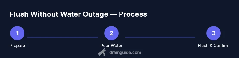 When your home’s main water is off, a standard toilet flush can’t happen because the tank isn’t refilling and the supply line is inactive. The mechanics of a toilet rely on a filled tank to deliver a gravity-assisted flush. However, you can still clear the bowl or move waste by manually delivering water into the bowl. This approach relies on a deliberate surge of water rather than a normal fill cycle. According to Drain Guide, grasping the basics of how a toilet flush works helps you plan a safe, temporary workaround during a water outage. The Drain Guide Team stresses that you should use clean water, avoid rushing to flush repeatedly, and keep the area contained to prevent splashes from becoming a bigger mess. For homeowners facing a temporary water outage, knowing these fundamentals reduces anxiety and sets expectations for the steps to come. You’ll also want to consider the overall plumbing layout, the toilet’s age, and whether you have alternative water sources available nearby.
