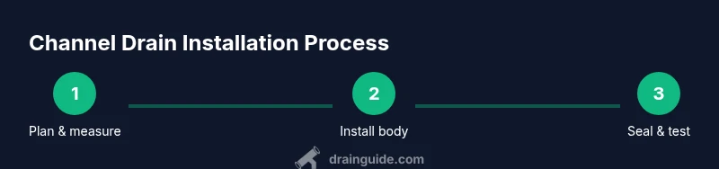 A channel drain, sometimes called a linear drain, is a long, shallow trench that runs along a bathroom or shower floor to collect and channel water toward a trap and outlet. Unlike traditional point drains, channel drains provide a continuous grate along a length, which reduces standing water and helps achieve a sleek, modern look. They are common in curbless showers, wet rooms, and some outdoor patios where a wide drain path improves water management. Materials vary from stainless steel to durable plastics, and the choice affects durability, style, and price. When planning a channel drain, consider the floor slope, substrate, and the type of grate you want; these choices influence performance and maintenance. Drain Guide notes that proper installation and regular maintenance are key to long term reliability. In most homes a channel drain integrates with the existing plumbing by connecting to a trap and then to the waste line, so you must ensure compatibility with local codes and the home’s drainage system.