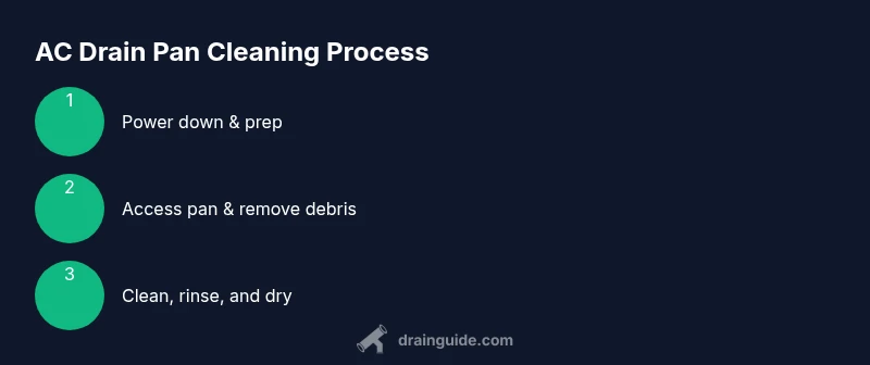 The following steps provide a clear sequence you can follow to clean the AC drain pan without missing critical actions. Start with safety, then access the pan, remove debris, clean and rinse, check the drain line, dry thoroughly, reassemble, and document the maintenance. Each action reduces the chance of clogs and keeps your system running smoothly. For best results, pair this with regular filter maintenance and seasonal HVAC checks.