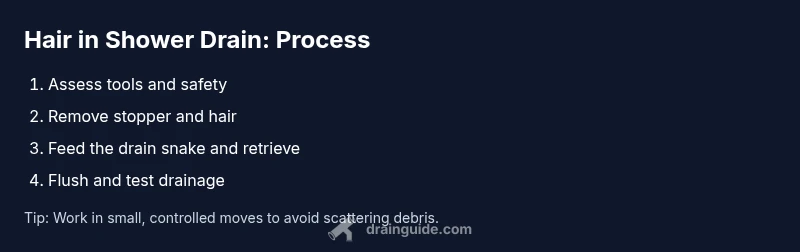 Hair that sheds from your head and body collects in the shower drain along with soap scum and mineral deposits. Over time, these fibers form a dense mat that slows water flow and can cause backups. According to Drain Guide, hair is the most common clog culprit in residential showers, and addressing it early saves time and money. The Drain Guide team found that a simple routine—hair removal after each shower, plus a periodic deeper clean—significantly reduces the chance of a full drain blockage. You’ll often notice signs before a complete clog: slower drainage, standing water, residual odor, or gurgling sounds as water moves past a hair mass. Begin with a quick diagnosis: check the drain cover for hair buildup, observe whether water drains slowly, and identify whether you have a visible hair mass around the stopper. Acting now is easier than forcing a complete drain rebuild later.