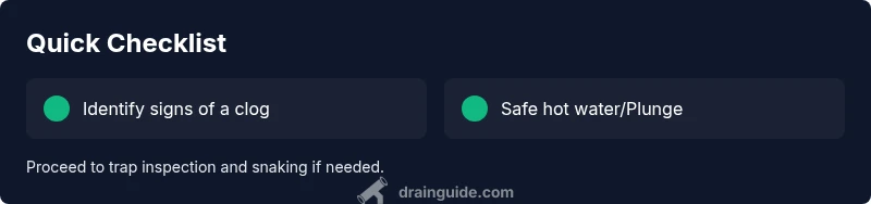 Before disassembling any plumbing, try a few low-risk actions. Remove the sink stopper and clear visible hair or debris from the strainer. Run very hot water down the drain in short bursts to loosen buildup (do this only if your pipes are metal or heat-tolerant PVC). Plunge the drain with a gentle, up-and-down motion for 15-30 seconds; a standard cup plunger works well for most sinks. If you see standing water or the water slowly drains after plunging, proceed to the next step: inspect and clean the P-trap. Place a bucket underneath, loosen the slip nuts, and inspect for hair, soap scum, or mineral deposits. Reassemble and test with hot water. Avoid mixing chemical drain cleaners with plungers or other methods, and never pour boiling liquids into plastic pipes.