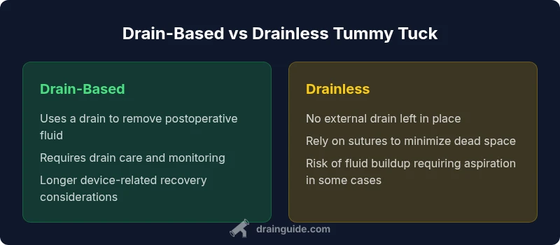 Understanding the difference between drain and drainless tummy tuck starts with the basic goal of both procedures: to tighten abdominal skin and underlying tissues after pregnancy, weight changes, or aging, while minimizing scarring and preserving function. The phrase 'difference between drain and drainless tummy tuck' is commonly used in patient consultations because it frames the core postoperative decisions that influence comfort, recovery, and risk. According to Drain Guide, the choice often hinges on how a surgeon manages the space where fluid tends to collect and how the patient’s body responds to surgery.