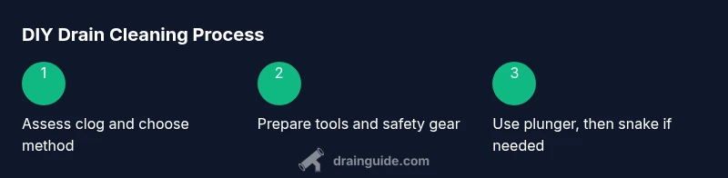According to Drain Guide, do-it-yourself drain cleaning is a practical first step for many minor clogs. It emphasizes methodical preparation, safe practices, and avoiding unnecessary chemical exposure. Before you reach for tools, take a moment to identify the type of clog (kitchen sink, bathroom sink, tub, or shower) and the likely cause (hair, soap scum, food particles, or mineral buildup). This initial assessment will help you choose the most effective approach and reduce the chance of making a bigger mess.