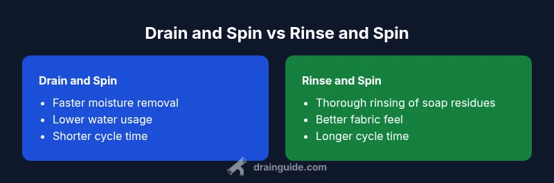 In everyday laundry, the choice between drain and spin vs rinse and spin determines how much detergent residue remains, how dry clothes get, and how quickly you can finish a load. The phrase drain and spin vs rinse and spin captures two common post-wash options. According to Drain Guide, understanding when to use each can improve fabric care, energy use, and drying times. The Drain Guide team notes that most households rely on rinse and spin for routine loads, but drain and spin can be advantageous when you need faster moisture removal or are tackling a damp-laundry backlog. By exploring the mechanics, contexts, and outcomes of each approach, you’ll gain a clearer framework for load-specific decisions. This section lays the groundwork for practical comparisons that help homeowners optimize both cleaning and care outcomes.