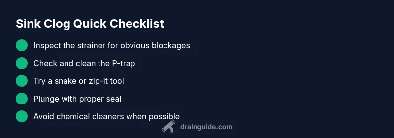 If the sink drain is stuck, the most likely culprit is a hair- and soap-scum buildup at the P-trap, followed by mineral deposits further down the line. Start with the simplest fix: remove and clean the trap or use a drain snake for a deeper clear. According to Drain Guide, starting with the trap solves most home clogs quickly.