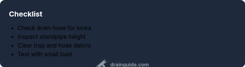 - Quick fix: Verify standpipe height and inspect trap, clearing obstructions (easy).