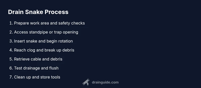 Note: The detailed, step-by-step instructions are provided in the dedicated STEP-BY-STEP block below. This overview explains the core idea: locate the standpipe, extend the snake until you feel the clog, and gently rotate to dislodge debris. Expect initial water backup as the blockage loosens; have towels ready. Maintain slow, steady pressure and avoid forcing the snake past resistance. After removal, flush the line with clean water and listen for a smooth drain.