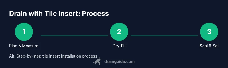 A drain with tile insert combines a drainage body with a tile-ready cover that sits flush with surrounding tile work. Instead of a plain metal grate, you install a tile insert that matches the pattern and thickness of your floor tile, creating a seamless surface. This approach is popular in showers, wet rooms, and occasionally bathrooms or kitchens where you want a cohesive look. According to Drain Guide, using a tile insert can simplify maintenance because debris are less likely to get trapped beneath a raised grate, and it enhances the room's aesthetic. The key is to ensure the insert is compatible with your tile thickness and the substrate beneath. Before you begin, confirm your drain size and whether your tile insert uses a clamping ring or mortar-set installation, as these choices affect tools, waterproofing, and curing times. Plan for a proper slope toward the drain to prevent standing water, and budget extra time for setting and grouting to keep the surface level. Drainage pathways should be clear and unobstructed to maintain reliable flow.