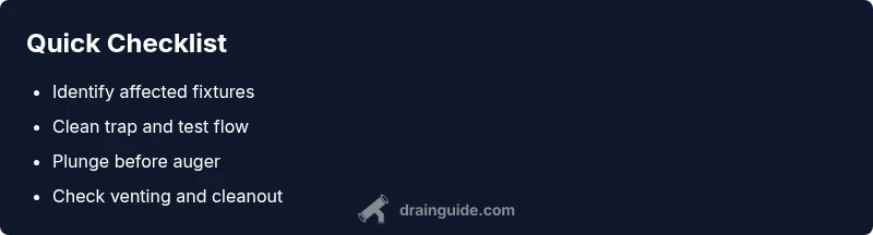 Most drainage problems start with simple, avoidable causes. Hair and soap scum can form stubborn clogs in bathroom drains; kitchen grease and food residue can accumulate in the disposal or pipe. A partially closed main valve or a slow vent can mimic a clog. Before you reach for chemical cleaners, inspect the trap, test with a plunger, and verify that the vent stack isn’t blocked by debris or a bird's nest. Drain Guide emphasizes starting with the basics: remove obvious blockages, flush with hot water, and note which fixtures are affected. If you find standing water in multiple fixtures, the issue is more likely a main line or vent problem.