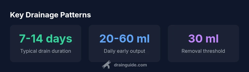 | Total drain duration | 7-21 days | Depends on healing and guidelines |