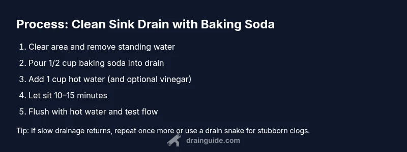 If you're wondering how to clean sink drain with baking soda, this method offers a gentle, chemical-free option for routine clogs. Baking soda acts as a mild abrasive and, when paired with hot water (and sometimes vinegar), helps dislodge soap scum, hair, and grease that slow drainage. According to Drain Guide, baking soda is a safe, user-friendly option for many clogs when used with hot water. This approach is best for light to moderate buildup in kitchen and bathroom drains and avoids harsh chemical cleaners that can irritate skin or corrode pipes. When you know what to expect, you can treat routine clogs without renting specialized tools or calling a plumber. It is important to distinguish between minor grease buildup and a true blockage; if you notice standing water that won't drain after a few cycles, you may need mechanical removal.