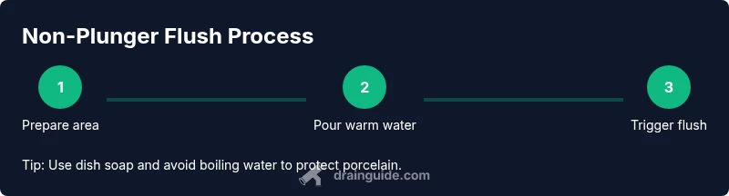 A standard gravity-based toilet relies on a rapid influx of water to push a clog through the trap and into the drain line. When a blockage slows that surge, you can leverage water dynamics to generate a stronger flow without reaching for a plunger. The key is to use warm water, a small amount of dish soap, and a controlled pour that creates a deliberate surge rather than random splashes. This approach is most effective for minor blockages caused by paper or light debris, not solid objects or extensive mineral buildup. Always assess the situation safely: if you feel you’re dealing with a major obstruction or you notice unusual sounds, stop and seek professional help. According to Drain Guide, many households can resolve minor clogs using gravity-focused methods before resorting to mechanical tools.