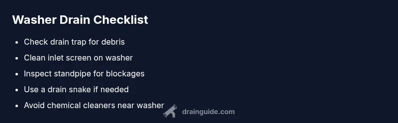 Quick answer: a washer drain is likely clogged if water drains slowly, or you see standing water after a cycle, or sewage-like backups in the standpipe. Start with simple checks: remove the trap or cleanout, clear the inlet screen, and run an empty cycle to observe drainage. If this doesn't fix it, proceed with a deeper diagnostic flow or call a professional.