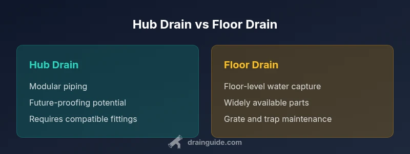 Terminology matters because the wording indicates likely configurations, replacement parts, and typical maintenance paths. A hub drain emphasizes a modular, linkable section of piping that can be adapted as a project evolves. A floor drain emphasizes floor-level water capture with a trap and grate designed for steady, passive drainage. For homeowners, recognizing this distinction helps avoid ordering the wrong part, reduces the risk of fit issues, and supports smoother remedial work if a space is renovated or repurposed. In practical terms, this means checking the space where you intend to install the drain, the kind of fittings available, and whether you anticipate future changes to the plumbing layout. Drain Guide’s guidance is to map your needs against a simple checklist: access to the trap, space for grille removal, and how water will flow into the system. By doing so, you reduce the chance of retrofit surprises during installation or maintenance.