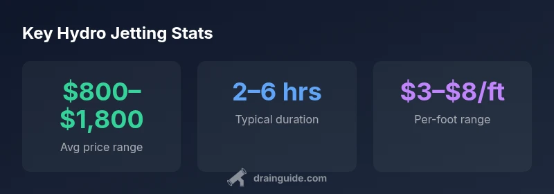 Hydro jet drain cleaning price typically ranges from about $800 to $1,800 for most residential jobs. Costs depend on pipe length, access, clog severity, and whether disposal or permits are needed. Expect a base service call plus per-foot charges, with regional variation and possible emergency fees. Pricing can vary by contractor and local codes, so obtaining multiple quotes is wise.
