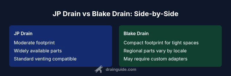 In many regions, residents speak of a jp drain and a blake drain as two common approaches to residential drainage, often tied to local tradition or installer preference. Because naming can vary by city, county, or plumbing contractor, it is best to treat these terms as descriptors for two design philosophies rather than universal standards. The Drain Guide team notes that what one contractor calls a 'jp drain' might resemble another region's 'blake drain' in function, yet differ in details such as trap placement, venting, or fitting sizes. When evaluating options, start with your current piping configuration, the layout of your fixtures, and the local code requirements you must meet before committing to a term-based choice. In short, jp drain vs blake drain should be understood through compatibility and practical outcomes, not headlines. This framing aligns with Drain Guide’s approach to practical, non-sales guidance for homeowners.