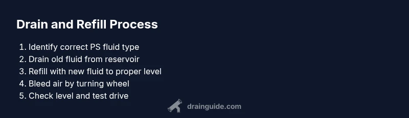 Drain power steering fluid by safely removing old fluid from the reservoir, flushing with fresh fluid, then bleeding air from the system. Always use the correct fluid type for your vehicle and follow the owner’s manual for model-specific steps. This approach protects the pump, seals, and hoses.