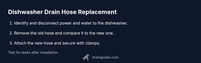 Not all dishwasher hoses are interchangeable. When selecting a replacement, check the hose diameter, length, and the type of end connectors to match your model. Look for a hose made of durable, flexible material with a secure clamp system. In addition, ensure the hose is rated for hot water and dishwasher use, and that the installation path avoids sharp bends. Drain Guide analysis shows that using an incorrect size or loose clamps is a frequent cause of leaks after replacement, so measure carefully and confirm compatibility before purchasing.