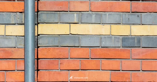 - Exterior gravity drain: Drain pipe runs along the exterior behind the wall, delivering water to a low point.