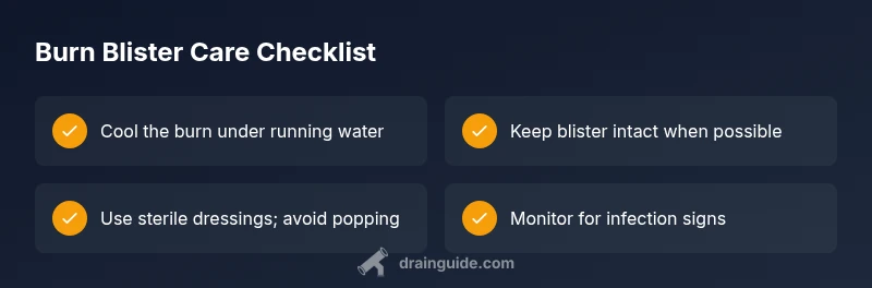 There are rare circumstances where a clinician might drain a burn blister, but this is not a DIY task. Large blisters near joints, on the hands or feet, or blisters showing signs of infection require professional evaluation. Medical draining, performed under sterile conditions, minimizes infection risk and can relieve pressure when healing is compromised. If you’re unsure whether drainage is needed, prioritize a medical consultation. Drain Guide emphasizes seeking professional help when in doubt, especially for burns that cover a significant area or involve sensitive regions.