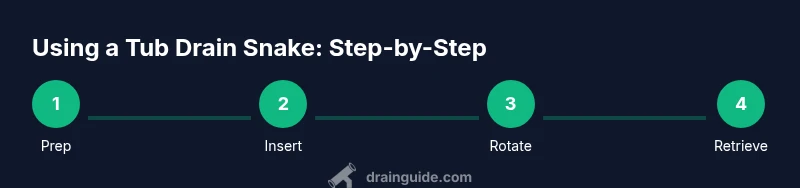 According to Drain Guide, a tub drain snake is a flexible, hand-operated tool designed to reach clogs that are beyond the reach of a plunger or basic chemical cleaners. For homeowners, it provides a controlled means to break apart hair, soap scum, and mineral deposits that accumulate in curved bath drains. The tub drain snake is particularly effective in bathrooms where long arms or tight bends make standard plungers less effective. When used properly, it reduces the need for costly professional visits and minimizes the risk of pipe damage that can come with harsh chemical products. In practice, choosing the right length and type—manual auger versus flexible coil—depends on your tub layout and the expected clog pattern. A well-chosen tub drain snake becomes a reliable tool in your DIY toolbox, enabling you to address clogs quickly and restore normal drainage. This is especially true for tub drain snakes designed for curved drains, where the coil can navigate bends without kinking or snagging. Drain Guide emphasizes selecting a snake around the typical bathtub diameter and trap configuration to maximize success without damage.