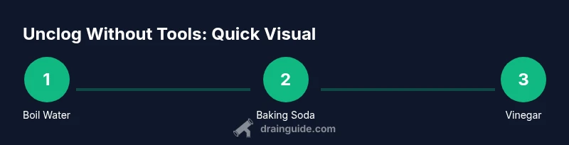 Clogs happen when everyday debris accumulates faster than your draining system can flush it away. Hair, soap scum, food particles, and mineral buildup are among the most common culprits in kitchen and bathroom drains. According to Drain Guide, most residential clogs originate from hair and soap scum combining with grease that solidifies in elbows and traps. While professional tools are capable, many clogs can be addressed with safe, tool-free methods that reduce mess and cost. This article walks you through practical, proven approaches you can perform with common household items, focusing on methods that do not require specialized plumbing tools. The aim is to empower you to clarify the drain path, restore flow, and prevent future backups through simple maintenance habits. You’ll learn why some approaches work, when to stop, and how to assess results so you aren’t wasting time on ineffective routines.