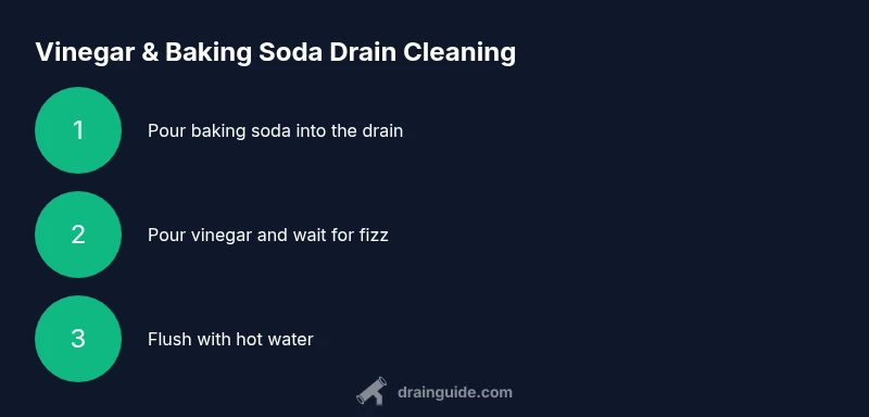 Vinegar and baking soda drain cleaner is a classic DIY option for light clogs and odors. White vinegar provides acetic acid, while baking soda supplies sodium bicarbonate. When combined, they fizz and create carbon dioxide, which helps loosen grease, soap scum, and hair buildup near the drain opening. The method is popular because it uses common kitchen ingredients and avoids harsh chemical cleaners. According to Drain Guide, this approach can be a safe first step for minor blockages in residential plastic or metal pipes. The Drain Guide Team notes that results vary with the clog’s type and location, and that powerfully clogged drains may require mechanical means or professional service. If you decide to try it, use the prescribed amounts, work with patience, and monitor for overflow. After fizzing, flush with hot water to carry debris through the pipe. This simple routine can also reduce odors by introducing heat and movement that minimizes stagnation.