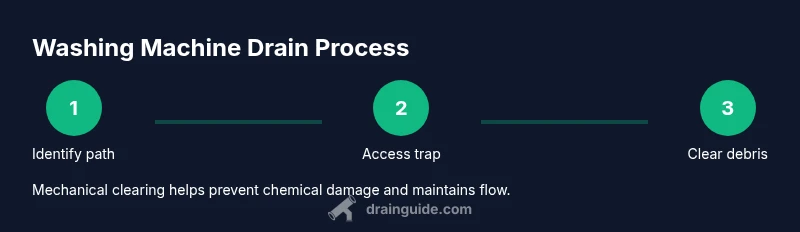 This guide outlines a practical flow: identify, protect, access, clear, flush, and test. Begin by isolating power and water, then locate the drain path. Remove any accessible portion of the trap and remove visible debris with gloved hands or a brush. If needed, extend the drain snake into the pipe to break through the clog, then reassemble, run a test cycle with a small load, and observe for leaks or backups. If water remains backed up, proceed to more thorough trenching of hoses and traps or contact a professional.