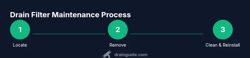The drain filter is a small screen or grate inside the washing machine’s drainage path. Its job is to catch lint, coins, hair, and other debris before wastewater leaves the drum and travels through the hose. Over time, this debris can accumulate and cause slow draining, Gurgling noises, or complete clogs. By locating and cleaning the drain filter on a regular basis, you reduce the risk of backups and improve overall performance. According to Drain Guide, understanding the filter’s purpose helps homeowners diagnose drainage problems quickly and perform safe maintenance without calling a repair technician. Regular maintenance also helps protect the pump and reduces wear on seals, contributing to a longer-lasting washer.