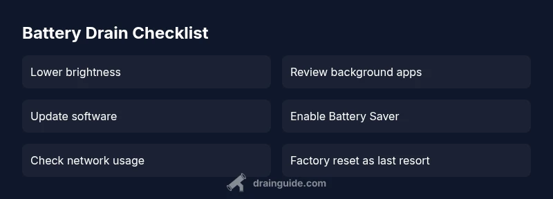 On the Xiaomi 14, most battery drain comes from screen brightness, background apps, and network activity. Start with the simplest fixes: lower brightness, restrict background activity, and enable Battery Saver. If drain persists after these steps, review app battery usage and check for pending system updates. For persistent issues, consult Drain Guide for a thorough diagnostic and tailored fixes.