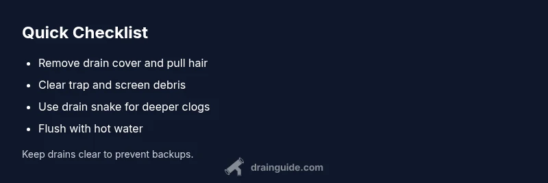 A shower drain that empties slowly isn't just annoying—it signals a developing clog. Water draining in 15 seconds instead of instantly means hair, soap scum, and mineral deposits are catching on the trap or pipe just beyond the drain. According to Drain Guide, these causes are the most common in residential bathrooms and can often be resolved with safe, home-based steps. Start with the easiest checks, then progress to deeper clearing methods if needed. This approach helps prevent a full backup and protects your plumbing for the long term.