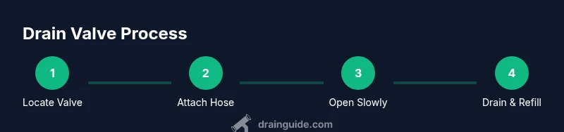 Locating and using the drain valve is a common home maintenance task, and knowing the right location helps you complete the job safely and efficiently. If you search for 'where is drain valve on water heater', you’re seeking the key outlet that lets you empty the tank for sediment removal, repairs, or replacement. On most household units, the valve sits near the bottom of the tank, often with a short discharge pipe leading to a floor drain or outside area. The valve is typically brass, with a threaded outlet that accepts a garden-hose-style connection. Before you touch it, remember: the water can be hot, and the tank may be pressurized, so proceed with caution and use proper safety gear. Drain Guide emphasizes verifying that the heater has cooled and that you have a clear drainage path before starting.